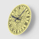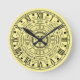 Vintage Pagan Wheel of the Year Clock. This fantastic pale yellow and black, Vintage style Wheel of the year clock captures the essence of the old pagan year. It has an outer ring showing the 12 months of the year. It has classic Roman numerals and in between each hour there is a full moon with that month's moon name. January - Wolf Moon. February - Storm Moon. March - Chaste Moon. April - Seed Moon. May - Hare Moon. June - Dyad Moon. July - Mead Moon. August - Wort Moon. September - Barley Moon. October - Blood Moon. November - Snow Moon. December - Oak Moon. An inner ring shows the 8 pagan festivals of the year, Imbolc (Candlemas), Ostara (Spring Equinox), Beltane (May Eve), Litha (Summer Solstice), Luchnassad (Lammas), Mabon (Fall Equinox), Samhain (Hallows), and Yule (Winter Solstice). The next inner circle shows the 12 star/birth sign symbols with the dates they run for. The face of the sun is at the centre of this wheel of the year clock. The Sun is a symbol of health and happiness and of course all life depends on the sun. This pagan themed clock will look perfect in any room and will tell you the time all year long. This vintage wheel of clock is perfect for pagans or indeed anyone who likes the occult and makes a great gift too!