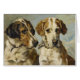 Vintage artwork titled "Pair of Foxhounds" by John Emms features a portrait of two alert foxhounds sitting side by side. The English artist, John Emms (1844-1912) was an avid hunter and became famous for his paintings of sporting scenes, horses and dogs, particularly Foxhounds and Terriers. He married a woman from Lyndhurst in 1880, and after a brief residence in London, they returned to Lyndhurst where they established a home and studio called The Firs. Emms lived there for the remainder of his life. He was famous not only for his artwork, but also for his big personality, flamboyant style of dressing, and often careless spending of money. This card is blank inside for your own message.
