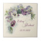 A vintage art nouveau floral design by 19th century watercolor artist Marie Low, featuring purple and mauve pansy flowers on a cream background. A super wedding anniversary gift or romantic souvenir of a special occasion.