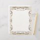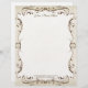 COLOR PALETTE: warm cream off white vintage, chocolate brown and white. PRODUCT: This is an 8 1/2" x 11" Business, Wedding, Bridal or Personal Stationery , resume paper or Letterhead. DESIGN COLLECTION: This hand painted, aged, antiqued texture background has a subtle but elegant appearance. This is a brand new art collection in a vintage style. This design is patterned after elegant Antique French Wallpaper, with aged and worn textures. Beautifully hand drawn swirls frame the text. Perfect for feminine businesses such as interior design, fashion or weddings
