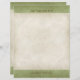 COLOR PALETTE: lime moss mossy green aged vintage, chocolate brown and white. PRODUCT: This is an 8 1/2" x 11" Business, Wedding, Bridal or Personal Stationery , resume paper or Letterhead. DESIGN COLLECTION: This hand painted, aged, antiqued texture background has a subtle but elegant appearance. This is a brand new art collection in a vintage style. This design is patterned after elegant Antique French Wallpaper, with aged and worn textures. Beautifully hand drawn swirls frame the text. Perfect for feminine businesses such as interior design, fashion or weddings