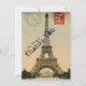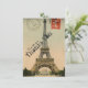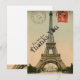 This thank you note (which is flat and does not fold) features a background image of a vintage postcard of the Eiffel Tower. Personalize with your name. Note that you can change the paper type.