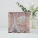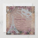 Vintage Paris masquerade party with diamond Eiffel Tower and diamond masquerade mask on a vintage floral and lace background.. This Paris masquerade party invitation is easily customized for your event by simply adding your event details, font style, font size & colour, and wording. This is a printed design with no real diamonds, glitter, etc. You can remove the vintage background to add your own background colour.