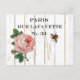 Shabby chic postcards feature a vintage paris address sign, vintage pink roses and hovering honey bee on a distressed wood background.