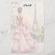Lady standing near a window looking at the Eiffel Tower. Customizable name.