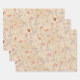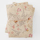 Whimsical trio of wrapping paper sheets features vintage pattern of watercolor French sweets, Eiffel Tower and more