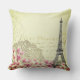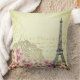 Throw pillow with vintage image of Paris postcard on the front and a geometric colourful design on the back.