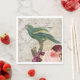 A parrot and flowers over a vintage newsprint background and a white damask accent.