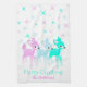 Add a festive touch to your kitchen or create a personalized hostess gift that's perfect for holiday parties. This adorable kitchen towel features three kitschy, retro deer in pink, light blue and bright mint green with matching vintage Christmas stars accents. It's ready to be personalized with your own message and name.
