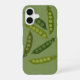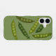 Retro pattern featuring stylized pea pods freely arranged on a soft green background.