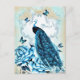 Vintage Peacock Blue Rose Butterfly Postcard