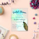 A vintage peacock by D'Orbigny brings elegance to this turquoise bridal shower invitation with watercolor splashed background and teal text.