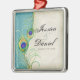 This elegant and sophisticated Christmas Ornament can be customized for a special anniversary or to celebrate a couple's first Christmas. The design blends the best of tradition and the freshness of the contemporary. Mixing Vintage art elements and contemporary watercolor art work hand painted by Audrey Jeanne Roberts gives a beautiful and timeless quality to this invitation. A stately Peacock rest upon elegant etched swirls and looking towards a very subtle hand painted damask with black behind it. Also available in a custom colour version where you can put any colour where the blue is now. Every product shown can be created in any colour you wish. YOU MIGHT ALSO ENJOY: WEDDING INVITATIONS: