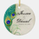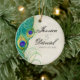 This elegant and sophisticated Christmas Ornament can be customized for a special anniversary or to celebrate a couple's first Christmas. The design blends the best of tradition and the freshness of the contemporary. Mixing Vintage art elements and contemporary watercolor art work hand painted by Audrey Jeanne Roberts gives a beautiful and timeless quality to this invitation. A stately Peacock rest upon elegant etched swirls and looking towards a very subtle hand painted damask with black behind it. Also available in a custom colour version where you can put any colour where the blue is now. Every product shown can be created in any colour you wish. YOU MIGHT ALSO ENJOY: WEDDING INVITATIONS:
