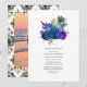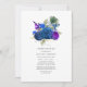 Elegant vintage navy and royal blue roses Celebration of Life invitation with accents of purple and gold in a baroque peacock theme customizable to your event specifics.