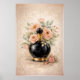 A refined vintage-style illustration featuring an elegant black perfume bottle adorned with soft pink roses and delicate foliage. Warm neutral tones and a textured background create a romantic, shabby chic composition inspired by classic beauty and floral themes.