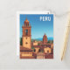 Vintage Peru Cityscape Travel Poster Postcard