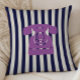 Throw pillow with vintage telephone illustration on a midnight blue striped background. Perfect for dorm rooms.