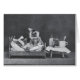 A whimsical vintage photograph of two cats, one who's bandaged up and convalescing in bed while the other stands over the bedside with a table full of medicines at the ready. Who did this to that poor kitty? Who caused such an accident? The dog must have done it! Inside the card is the line, "No matter what you've done wrong, always try to make it look like the dog did it."