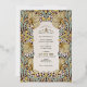 Embrace timeless elegance with our wedding invitations featuring the renowned Pimpernel pattern by William Morris, masterfully rendered in vintage hues of dusty pink, faded blue, and accented with gold foil. William Morris, a figurehead of the Arts and Crafts Movement, believed in the beauty of handcrafted designs and the harmonious interaction of colour and pattern. His iconic Pimpernel pattern, characterized by its entwining foliage and delicate florals, has endured through the decades, embodying an aesthetic that celebrates the natural world and intricate craftsmanship. These invitations not only pay homage to a bygone era but also resonate with modern sensibilities, making them a perfect choice for couples seeking a blend of traditional artistry and contemporary elegance for their wedding celebration. The soft colour palette evokes a sense of vintage charm, while the gold foil accents add a touch of modern sophistication. Invite your loved ones to partake in your union with a piece of art history that complements the profound essence of matrimonial bonds.