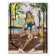 Vintage Pinball Machine game with a classic 1950s woman sitting on a sandy beach surrounded by palm trees. Retro vintage classic old pinball machine game.