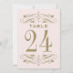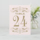 Vintage style wedding table number cards feature decorative swirls and flourishes on both sides of the card. Pale pastel ballet pink and antique gold colour scheme. Personalize each table number card that you need and add each to your cart individually.