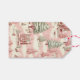 Beautiful watercolour vintage Christmas pattern is shades of pink and green mix . Trendy pink Christmas gift tag.