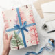 Beautiful watercolour vintage Christmas pattern is shades of pink and green mix . Trendy pink Christmas gift wrapping paper seamless roll. Fun pink Christmas paper.