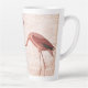 This design is an elegant vintage-inspired pink flamingo over a light pink background of newsprint and subtle flowers.