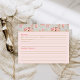 Vintage garden party themed recipe card design features a beautiful pattern of floral roses that frames the wording and soft pastel colours - blush pink, vintage blue green, and gold.