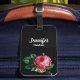 Vintage pink flower custom name black luggage tag