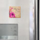 It was a bit smaller than expected, but I was too excited to check dimensions. The product itself send well printed though the grey text is a bit paint. Magnet worked perfectly on my fridge.