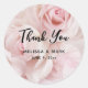 Thank you stickers with a photograph of a bouquet of pink roses. Vintage elegance.