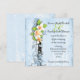 Vintage plumeria ivy blue white custom wedding invitation, featuring beautiful white and orange plumerias and ivy on blue grunge background. Blue, white, green, orange.