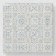 A seamless ornamental tile pattern featuring intricate blue floral motifs, geometric frames, and decorative scrollwork arranged in a classic European-inspired layout on a soft neutral background.