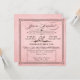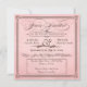 This beautiful, light pink square wedding reception invitation, with chocolate brown text has a vintage, old fashioned feel with old-timey letter design, including elaborate script elements, a decorative banner, stars and a swirly ampersand. The fancy invitation is inspired by both vintage design and stylish posters. The text reads: "You're Invited to the wedding reception of [customizable name] & [customizable name] [customizable date] [customizable time]. Please Join Us for an Unforgettable Celebration". Further personalize the invitation with the reception information and address, in the box with dotted border.