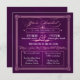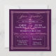This rich aubergine purple, soft pink and white square wedding invitation has a vintage, old fashioned feel with old-timey letter design, including elaborate script elements, a decorative banner, stars and a swirly ampersand. The fancy invitation is inspired by both vintage design and stylish posters. The text reads: "You're Invited to the wedding of [customizable name] & [customizable name] [customizable date] [customizable time]. Please Join Us for an Unforgettable Celebration". Further personalize the invitation with the wedding ceremony and reception information and address, each in their own box with dotted border.
