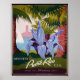 Cool Vintage Poster Featuring purple flower, palm trees and sailboat ,with historic San Juan Puerto Rico in the Background. Vintage Puerto Rico Posters