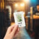 Name tag with a seasonal St. Patrick's Day image. Faded grunge style paper. A green pot of gold with coins