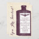 This invitation features an old black and white illustration of a medicine, potion, or poison bottle with a bat on an old paper style texture. The text can be altered to say what you want.