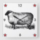 Vintage Primitive Style Sheep Wall Clock. White sheep in side view with four red stars, one in each corner. Very sweet!