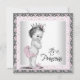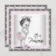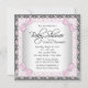 Invitations de douche bébé princesse avec adorable princesse vintage petite fille portant un pantalon rose et couronne sur un joli arrière - plan de dentelle noire rose et argent. Le côté arrière a de mignons arcs roses et est facilement customisé pour votre événement en ajoutant simplement vos détails dans le style de police que vous préférez. Il s'agit d'un design imprimé sans vrais arcs, dentelle etc.