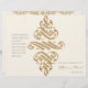 NOTE: This is a graphically produced "gold metallic" look. There are no dimensional layers, it is a flat printed design. COLOR PALETTE: Cream and printed "gold look" colour. DESIGN COLLECTION: A beautiful, fun and inexpensive option for wedding programs. These will be shipped to you flat and you will need to fold them in 1/2 or most local print shops will do this for you at a nominal charge. It is designed to coordinate with the "Vintage Printer's Ornament Swirl" wedding collection. It has a simple, yet elegant design. In warm shades of tan and white with a beautiful, antique printer's ornament design reminiscent of a damask element on the front and your wedding invitation text which is easilycustomized. On the reverse side is a soft elegant antique swirl pattern. CUSTOM COLORS: We can create this invitation set in any colour combination you would like for your wedding, just send us a message and we're happy to work with you.