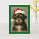 Cute, vintage picture of a pup wearing a Santa hat, is featured on this Christmas greeting card. Inside of the card reads, "I've been good, how about you? Hope all your Christmas wishes come true! Merry Christmas and a Happy New Year too". A sweet card to give family and friends for the Holidays!