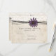 This vintage old fashioned floral wedding invitation response cardfeatures whimsical customizable text with a violet or lavender purple daisy flower image and faded white lace against an aged parchment paper. Goes great for a Spring wedding, Summer wedding, Fall and Autumn wedding, garden wedding, outdoor wedding, backyard wedding, and bridal shower and wedding shower invitations. Matching products available in my shop!
