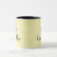 Queen bee mug featuring a vintage style bee illustration with stripes in light yellow and personalized name.