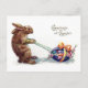 Vintage Rabbit Pulling Easter Egg Holiday Postcard