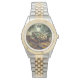 The watch is bright and shiny. It feels strong and durable. It is very appealing and attractive. The printed image appears clear. It is a perfect reminder for me to "Be Present" everywhere I go.
