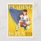 This postcard is a reproduction of a vintage library literacy poster reading, "Reading is fun," and advertising Book Week.