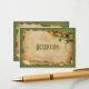 This bygone era inspired vintage reception enclosure card has PRINTED dried yellow roses, a small green satin bow, and an old pocket watch sitting on a stack of old love letters with faded calligraphy writing and torn and burnt edges on them, sitting on top of an olive green crackled paint LOOK distressed background that matches the wedding invitations shown below. ****If you re-size the card, or if you change fonts, or the size of the font, some of the design and/or text may get cut-off. Everything will print as you see it on your monitor. I will not see your invitation, and Zazzle will NOT correct anything (typos, mis-alignment etc.). The text and paper is all customizable. If you need help with this card, please email me BEFORE you place your order. If you require any other matching items, please email your request to niteowlstudio@gmail.com.